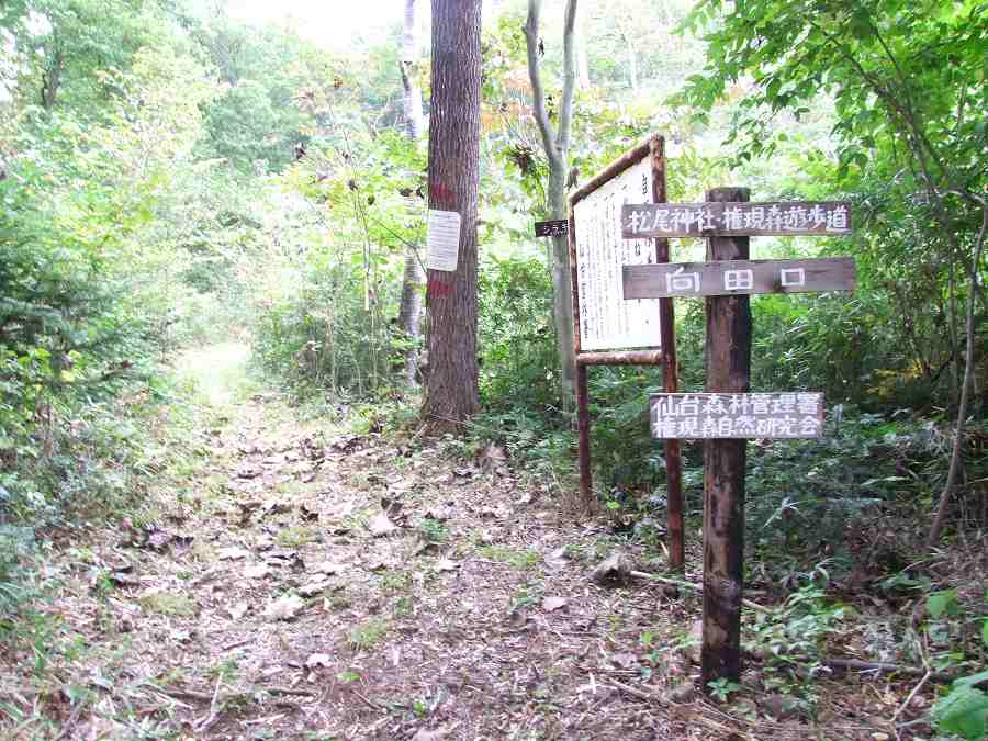 | ・場 所:宮城県仙台市青葉区葛岡 ・説 明:標高314mの北峰と松尾(まつお)神社が祀られた294mの南峰からなる。 蕃山と共に「県緑地環境保全地域」に指定されています。 権現森(向田口)コース→松尾(まつお)神社→葛岡(くずおか)コース 権現森自然研究会の案内板があります。 |